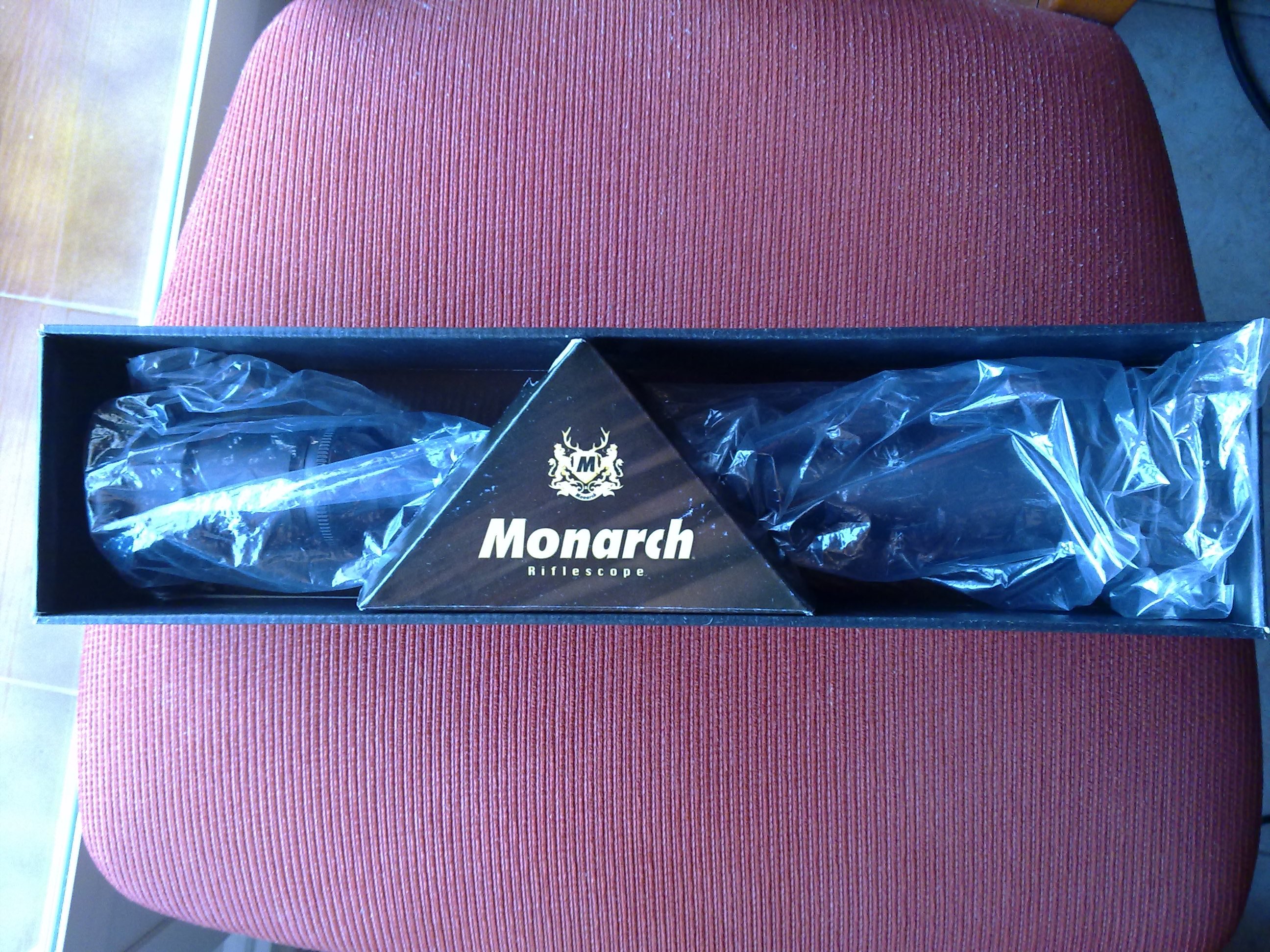 Aquí os presento mi primer visor. Es un Nikon Monarch III 2.5-10x50 de 1 pulgada. Espero instalarlo en el mosin aprovechando las monturas PE y el cerrojo curvo que traje de USA (hay un hilo sobre el tema).