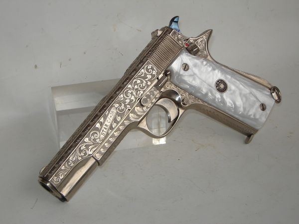 Dispongo de una Firestar M43 en brillo y estoy apunto de cromar el cañon y guia del cañon con nitruro de titanio, corredera y armazon de nitruro de Cromo mate, estos materiales estan garantizados y actualmente es lo mejor que hay en el mercado, incluso mejor que los baños electroliticos en oro,para dejar un acabado perfecto y uniforme como las Sig Sauer,las cachas son imitación nacar con un fresado redondo, donde se ubica un medallón español de militaria bañado en oro.