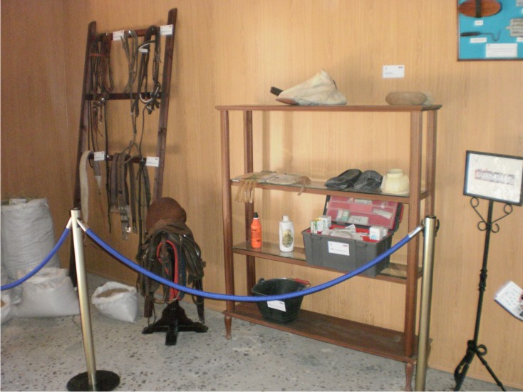 Dentro como podréis ver por las fotos, se colocaron una serie de paneles con letreros informativos, laminas, planos, cuadros de todo tipo, tanto de batallas como de caballeros y personajes ilustres que tenía que ver con la caballería, fotos, útiles de todo tipo, armas, uniformes, maquetas y figuras varias, y un sinfín de objetos que nos contaban tanto el desarrollo del caballo desde hace millones de años hasta nuestros días, sus razas, procedencias, tipos, variaciones físicas, y su empleo a lo largo de la historia.