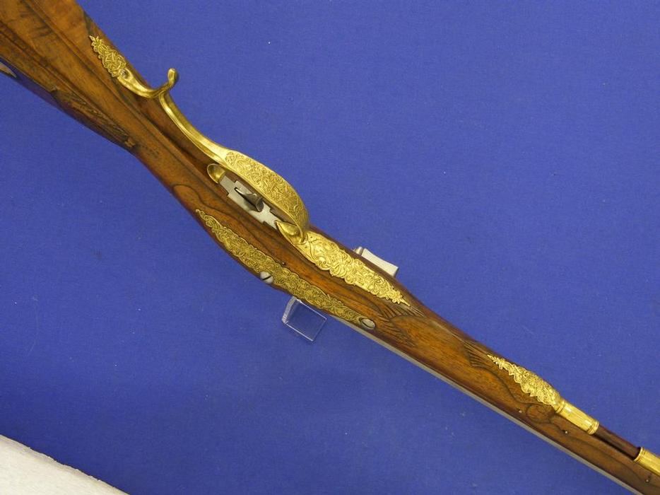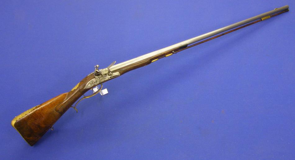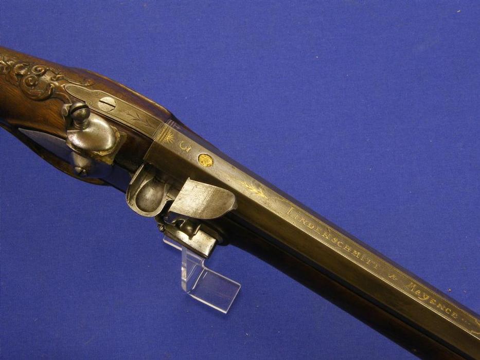 A very nice 18th century German Flintlock Gun, signed LINDENSCHMITT A MAYENCE(Mainz), caliber 15mm smooth, length 120, in mint condition. Price 2.850 euro
