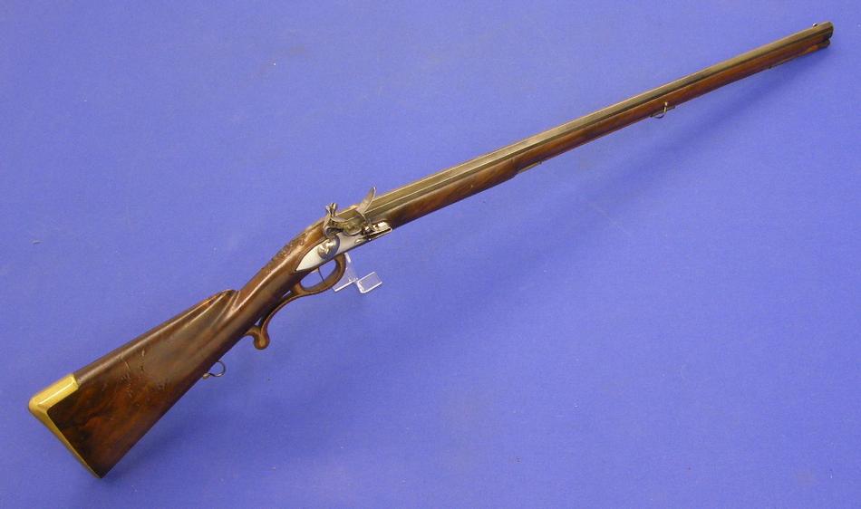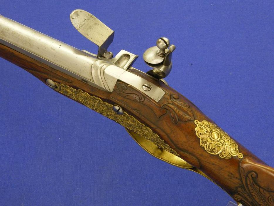 Un buen fusil aleman en chispa, del siglo XVIII , firmado por LINDENSCHMITT en Maguncia (Mainz) anima lisa de calibre 15 mm, longitud 120 cm(?) en perfecto estado. Precio 2,850 euro.