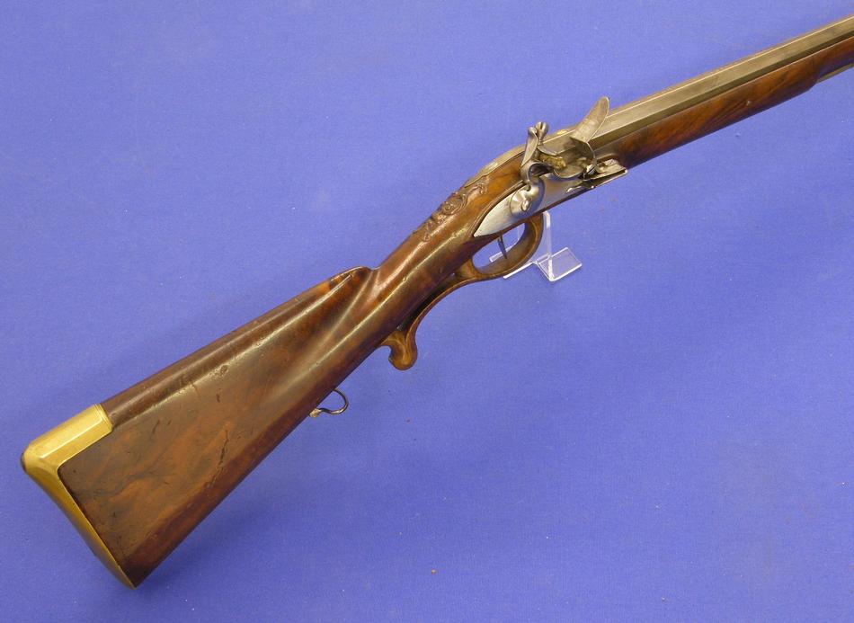 A very nice probably German Flintlock Rifle, circa 1750, caliber 16 mm rifled, length 138 cm, in mint condition. Price 2.700 euro