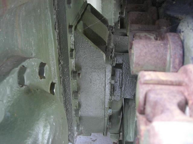 y otro detalle (foto) en el que se ve con claridad parte de la modificación de la versión E9...recordar, tren de rodaje separado de barcaza para poder adaptar por la cara interna de la cadena el suplemento (duck-bills) para mejorar la traccion de la cadena de los VSS...