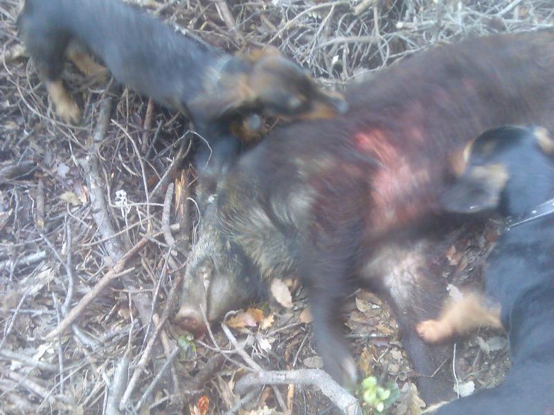 Os dejo el jabalí matado en el día de hoy para hacer el 62 en nuestra cuenta.Ahora mismo tenemos 3 de los mejores perros muy mal por culpa de los colmillos de este jabalí.Un mastín,un boxer-alano y un orejudo.Ahí quedan las fotos.
