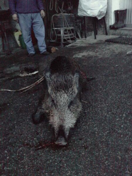 A la hora de irnos el jabali de unos 45 k. que cazo mi hermano no aparacio pon ningun lado.....