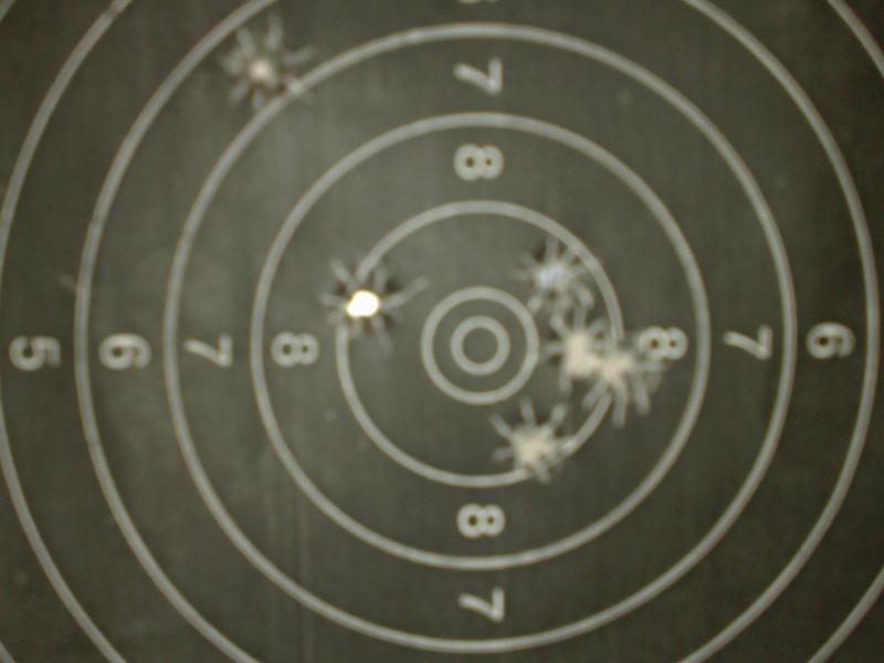 En primer lugar mostrar mi agradecimiento a jolz18 por su asesoramiento y sus sabios consejos,he preparado unas balas con carga reducida y he ido a probar que tal iban sin los contratiempos que tenía con el dichoso recalibrado y los dies lee,cierto es que es a 50mts y en plan de prueba a ver que tal agrupaban y el resultado de tu receta y el suizo conjuntamente en un 99% poniendo yo el 1% restante ya que no soy un prodigio ha salido este resultado