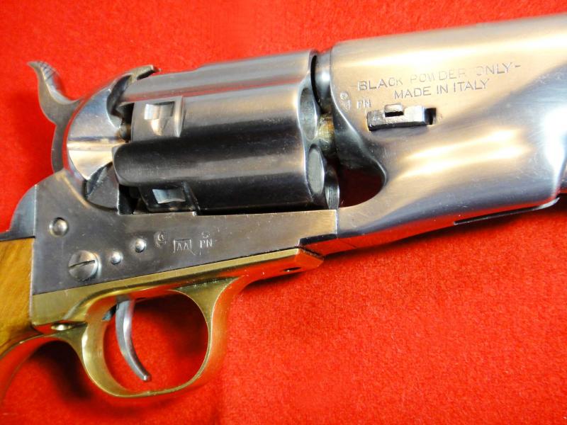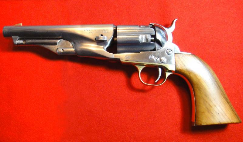Este mismo lo puse en el foro hace ya algún tiempo debido a la similitud que tenia con uno fabricado en Bélgica por la unión de armeros Belga, el colt Centaure 1860 New Model Armi, en la primera foto es el mio situado encima de la foto de la portada y es clavadito.