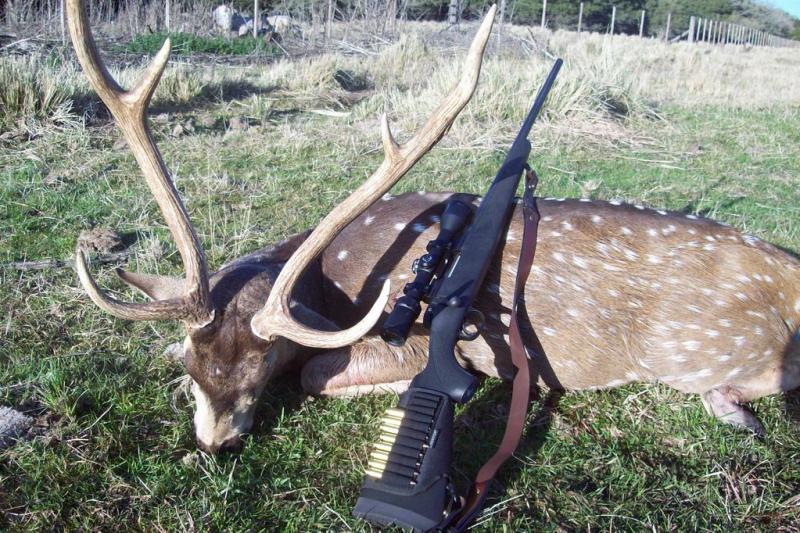 Fué todo el diálogo. Estaría a unos 140 metros aprox, esperé a que se pare mientras lo seguia con por el lente de la mira, se paró, ubiqué el retículo al centro de la paleta y apreté suavemente la cola del disparador hasta que me sorprendió el disparo que sonó como trueno en el monte, imediatamente un bolsazo seco y el ciervo que se desploma como si lo hubiera tocado un rayo.