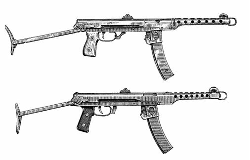 La segunda es sin duda una Pistolet Pulemet Sudaeva 1943 o lo que es lo mismo una PPS-43.