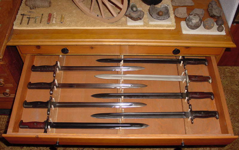 Hola, colecciono bayonetas y machetes españoles y busco ideas para fabricarme un expositor. Tengo intención 02