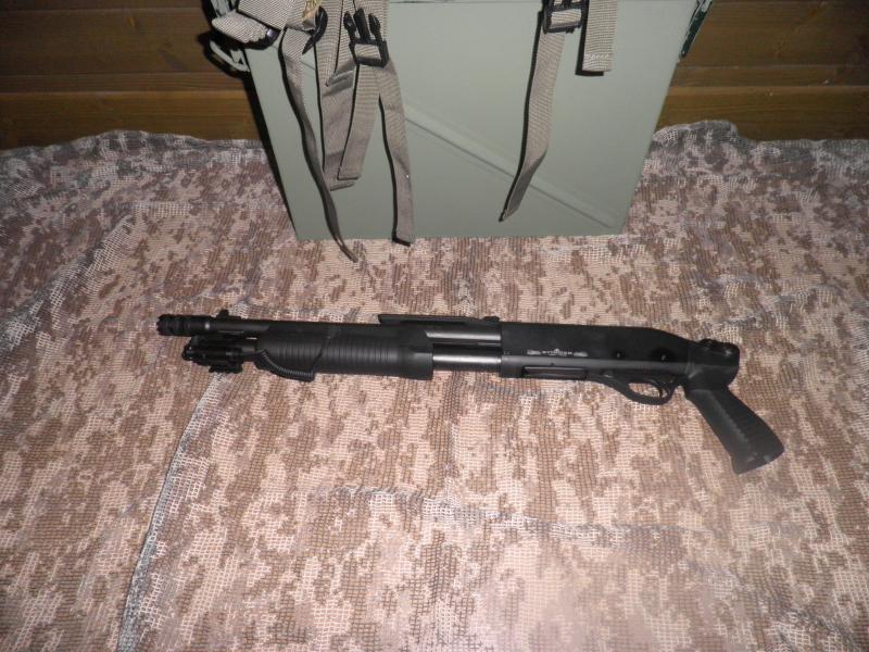 Se trata de una Reminton 870, aunque no sé seguro el modelo (ahí si alguien puede ayudarme le estaré agradecido), me vino con culata y guardamanos sinteticos, culata y guardamanos de madera y culata táctica con pistolet, a mí me gusta tal y como la he dejado. Yo le puse el portacartuchos, y tengo en mente una correa silenciada de 3 anclajes, pero ya para el sueldo del mes que viene. :caba: