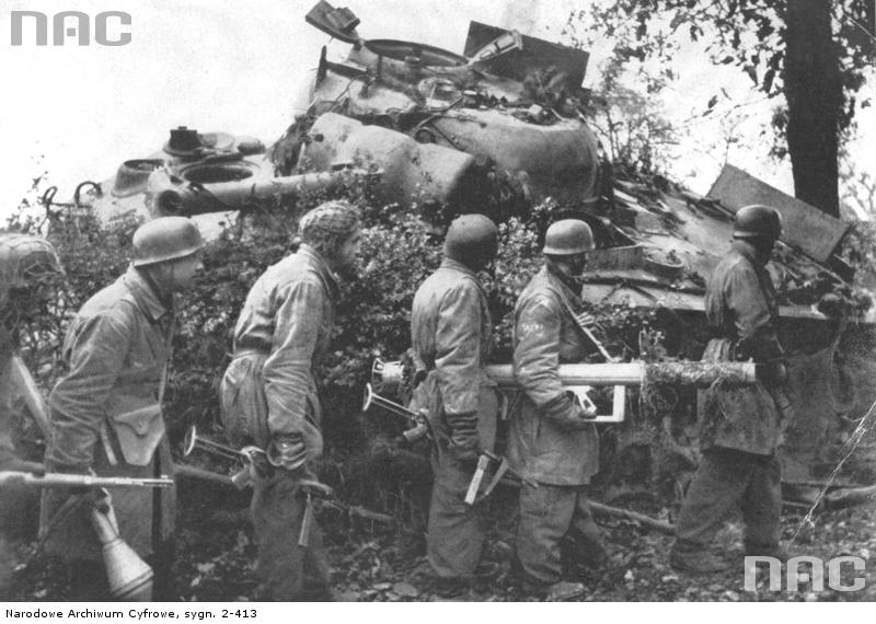Solo una cosa mas,que no acabo de apreciar pero es de interes,que el 8.8 cm Raketenpanzerbüchse 43,podria ser la version 54,porque llevaba una proteccion metalica para la cara,y en la foto parece cubierta de maleza para camuflarse.
