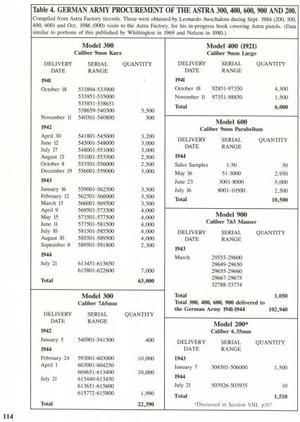 Astras 600, 900 y seriales de los Contratos de Astra para la Alemania Nazi.