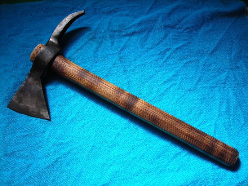 Los primeros tomahawks fueron regalos de los europeos a sus aliados indios. Amigos en la paz aliados en la guerra... de ahí el juntar la pipa y el hacha en un mismo objeto. Las siluetas que aparecen al principio de este hilo corresponden a la mayoria de los tomahawks conocidos. La mayoría de ellos fueron producidos por los británicos y vendidos o regalados a las tribus aliadas. Los franceses también repartieron muchos. Hay algunos ejemplares con otras formas pero comparado con estas son muy raras. Efectivamente los nativos nunca dominaron la metalurgia del hierro. Los únicos objetos de hierro precolombinos estan hechos de hierro meteórico, son herramientas esquimales hechas por martilleo en frío. En el ártico es más fácil encontrar un meteoríto. Son negros y destacan sobre el hielo. Con los europeos los indios fabricaban objetos de hierro/acero sobretodo puntas de flecha y lanza pero también objetos mas elaborados como cuchillos de antenas de los Kuchin de alaska. Los indios tambien usaron otras achas de guerra diferentes a los tomahawk. Parecidas en forma pero sin pipa. El tomahawk es una arma mucho mas temible de lo que parece. Diferentes testimonios hablan de la habilidad de los indios con el tomahawk especialmente lanzandolo a los enemigos.