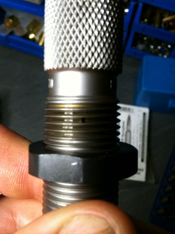 Por lo que veo usas el mismo lubricante que yo y es muy denso hay que dar muy poco, prueba a pasar un paño despues de engrasar la vaina para retirar lo mas gordo e intentar dejar la capa lo mas fina posible, yo tambien lo que haria es desmontar el die y limpiarlo bien asi como cercionarte de que el orificio de liberacion de presion esta limpio y no se encuentra taponado ya que esto podria probocar ese fallo tambien. aqui te dejo una fotografia del orificio en cuestion.