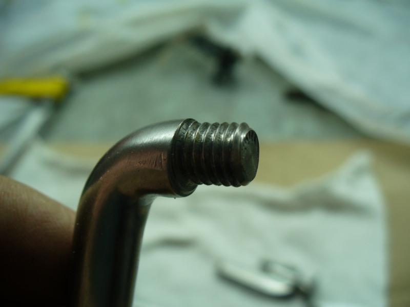 A la hora de taladrar, he usado una broca de 6.75 mm ya que la rosca de la maneta es de métrica 8 (8X125). El taladro le he hecho de 13 mm de fondo, más que suficiente ya que el metal tiene un grosor aproximado de 17 mm en la zona de roscado.