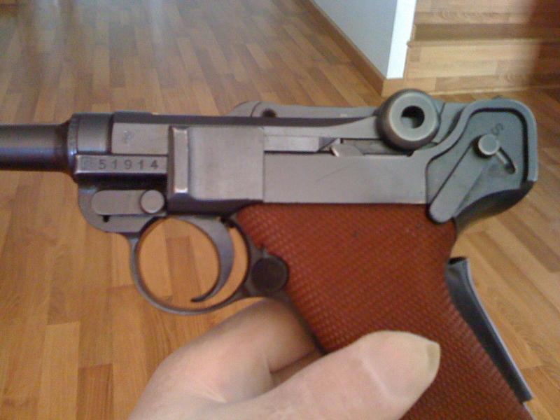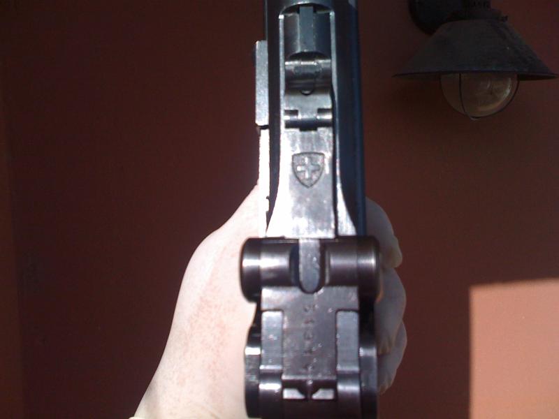 Me hablaron muy bien de ella y, una vez vista, pues tenían razón. Está impoluta. El problema es lo que comenté: no tiene marcajes alemanes o al menos eso creo yo porqué sólo tiene el número de serie en cañón, mecanismo y caja. Después en el lateral y cargadores tiene marcada una P .