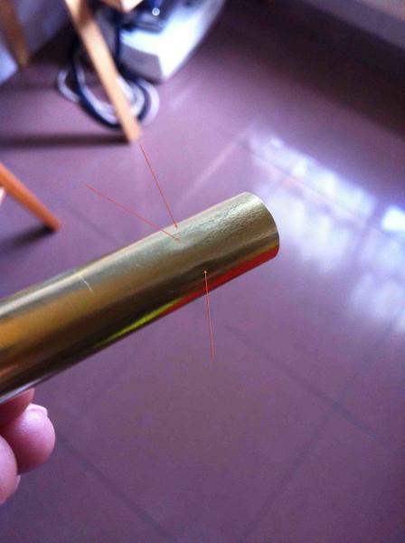 Hola esa vaina la recargas y la disparas y esas hendiduras hacia dentro se te quitan y luego la recalibras de nuevo ty eso si con una pelicula muy fina de lubricante y ya veras como no te salen mas y claro suponiendo que no este defectuoso los dais.