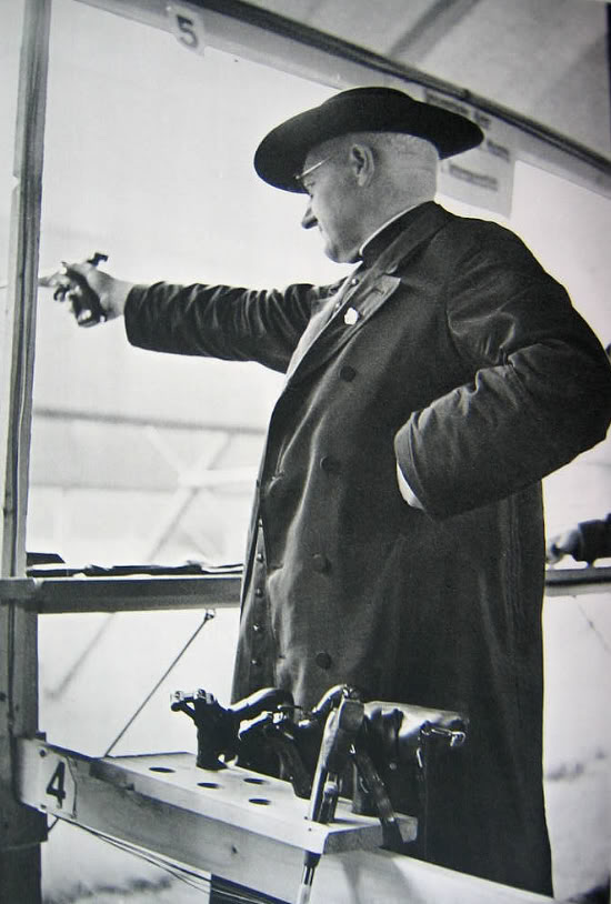 CLÉRIGO SUIZO PRACTICANDO EL TIRO CON PISTOLA LIBRE.-