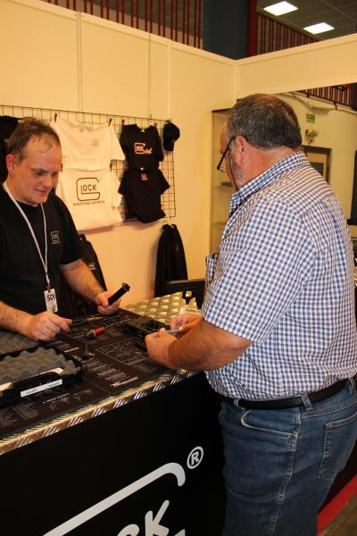 Como siempre y a mi entender había una que destacaba, si señores, ARMERIA MARCOS de Logroño, aparte de tener una representación para la venta de todos los modelos de las pistolas GLOCK, nos dedicó su tiempo dándonos una lección magistral de como se monta y desmonta completamente la pistola, poniendo a nuestra disposición para ello de un arma -inutilizada-, pero a fin de cuentas una pistola.