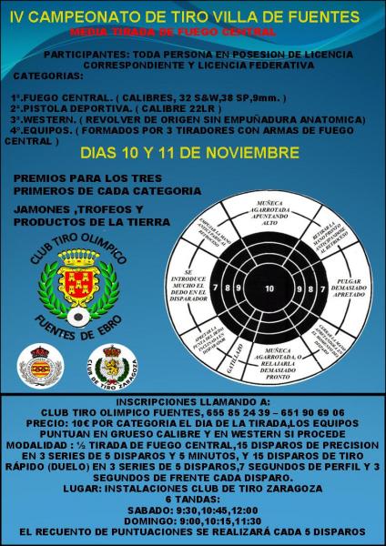 Los proximos dias 10 y 11 de noviembre el C.T.O.FUENTES organiza su IV campeonato de tiro en las instalaciones del C.T.ZARAGOZA