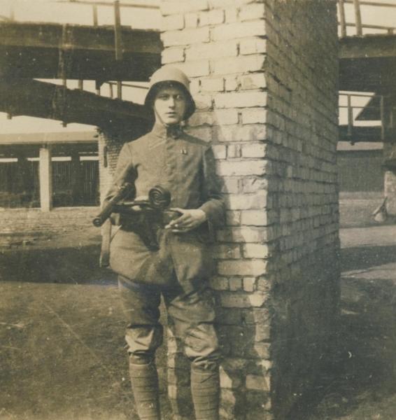 4 -Suomi Kp-31-42 SJr 9 mm parabellum , en manos de un soldado Finlandes, una evolucion modelo inicial M-31 , pero con bocacha compensador apagallamas con cargador de 71 cartuchos