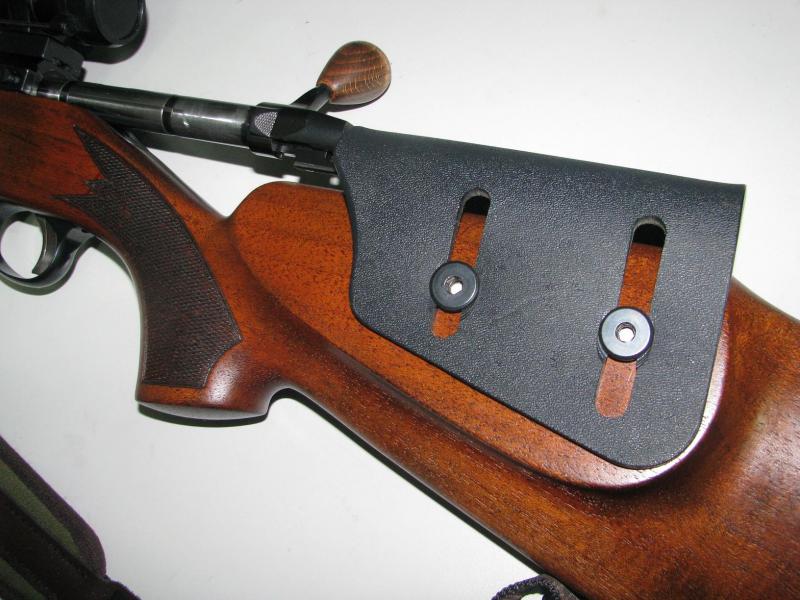 Y me he fijado en el artilugio de la culata para mantener el encare a la altura del visor, cosa que llevo tiempo buscando, ya que tengo el mismo problema, que para centrar el ojo al visor tengo que levantar la cara de la culata. Por eso me gustaría saber donde lo has conseguido, cuanto puede costar y si para su instalación se hace necesario hacer algun agujero a la madera o va sujeto por algun otro metodo que no haga esto necesario. Me ha gustado el sistema ese, pues parece que es ajustable en altura.