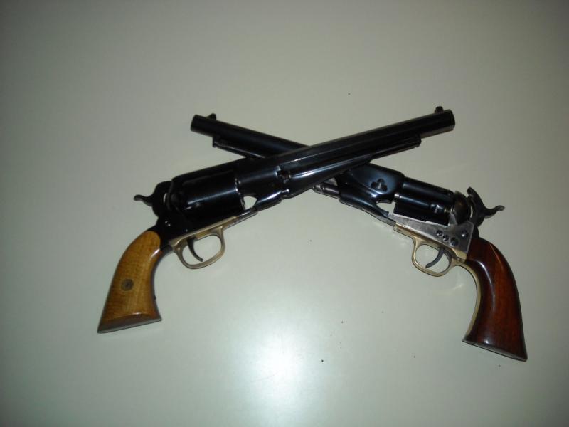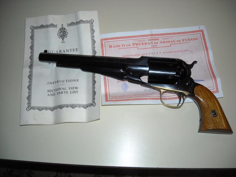 Bueno,pues como lo prometido es deuda,aqui van las fotos.Como ya hos comente el SB 1858 nuevecito de trinca(tiene sus años pero esta sin estrenar),y el Colt 1860 con tambor acanalado de Uberti(de ocasion de Gabilondo en Valencia)nuevecito,nuevecito,y este con chimeneas de berilio(que no se si se las cambiare al SB).