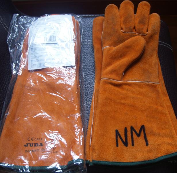 2X Guantes de Soldar. (Un par esta usado una sola vez para mover material y marcado con iniciales).