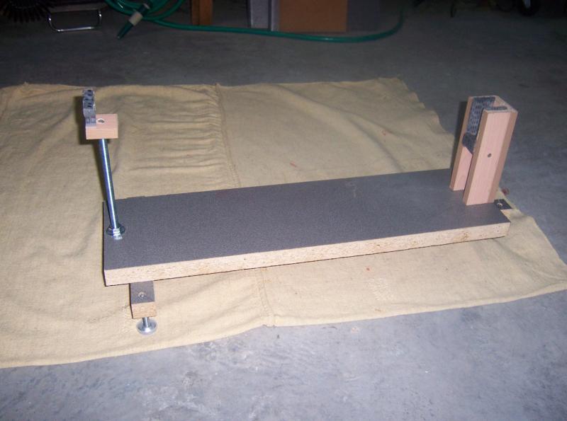 Aquí teneis el mio, hecho con los restos de la encimera de la cocina, varilla roscada de 12, y 3 patas graduables.