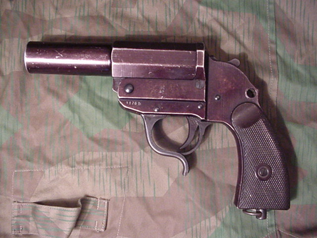 Pues si, lo que lleva el alemán en esa funda es una pistola de señales alemana leuchtpistole.