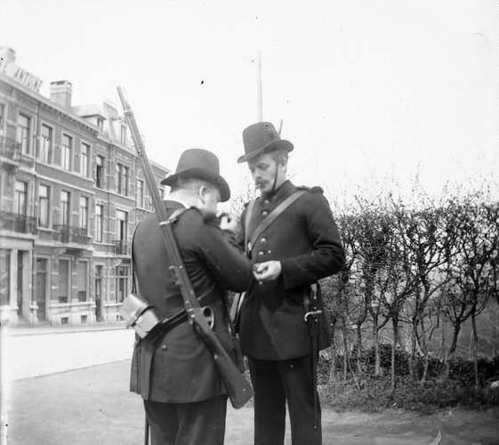 Son Garde Civique belgas con sus fusiles Comblain M1882 del 11x50R.