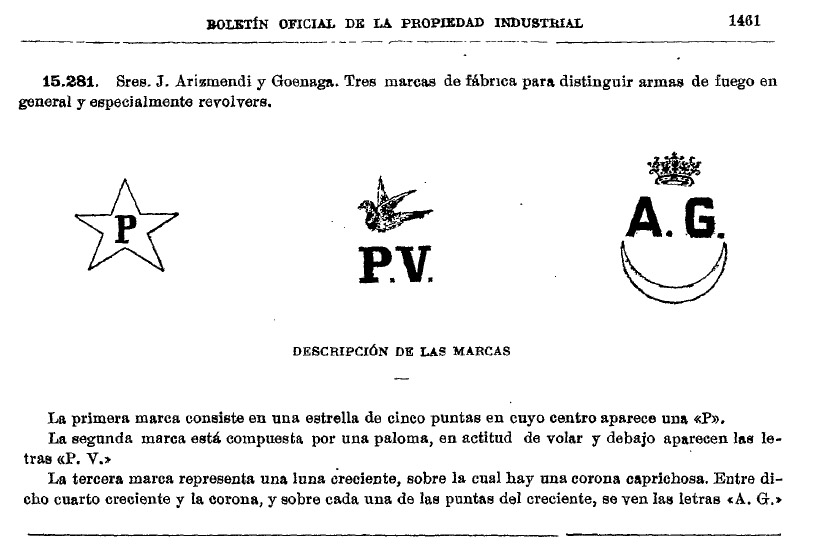 La marca "P.V." pertenece a Arizmendi y Goenaga, de Eibar, que la registraron en 1908.