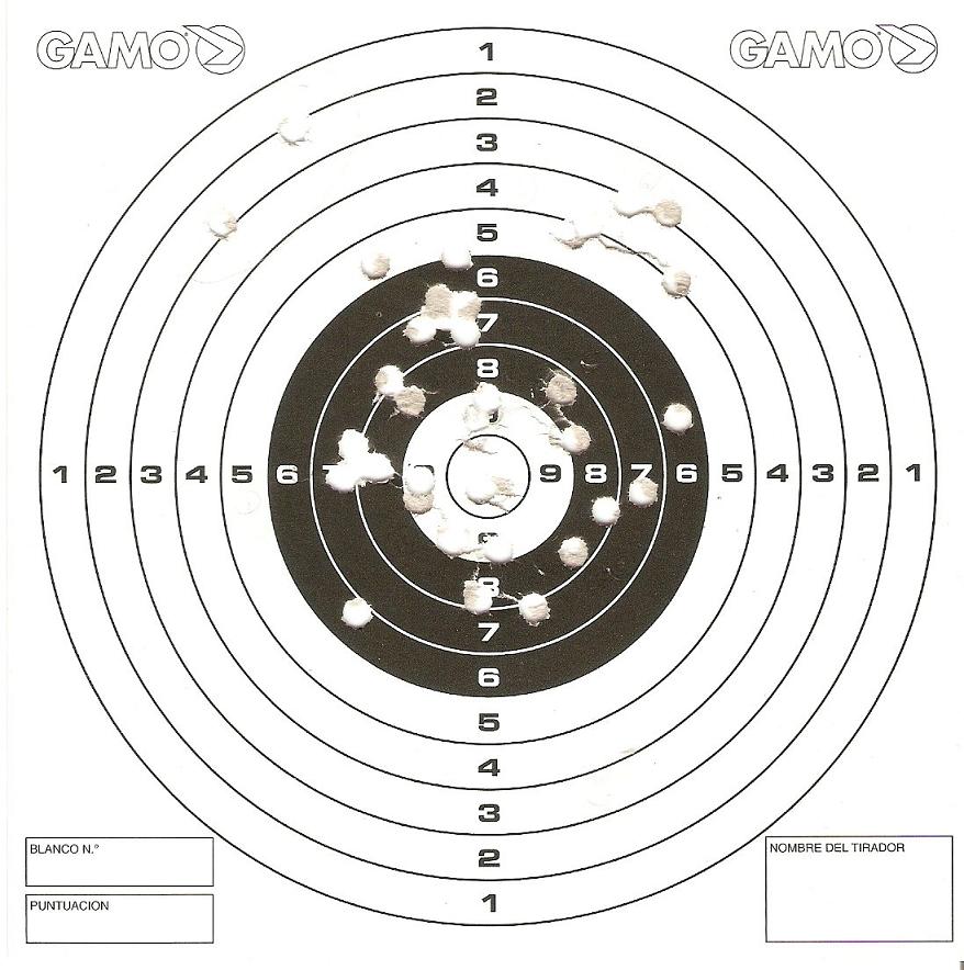 Estas dianas están hechas con una Drulov lov-21 adquirida hace unos días para ir practicando el coger las miras y mecanizar el proceso de apuntado mientras espero que me llegue la licencia F (entregué la documentación el pasado martes en la Intervención de Armas así que todavía tengo una larga espera por delante). Todas las dianas están hechas con munición gamo match que viene en cajitas de cartón (era la más barata que tenían en la armería donde compré la munición) a 10 metros en interior, concretamente en las instalaciones para tiro neumático del Club de Tiro de Trasona (Asturias), y a una mano.