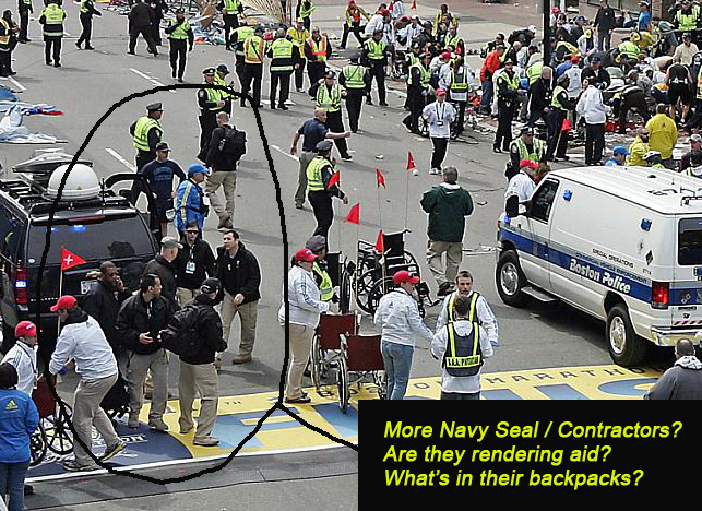 sobre los dos tipos vestidos "S+EGURIDAD" esta clarisimo q han participado en el atentado hay fotos en las q se les ve manipulando un terminal parecido a un movil, ademas de q actuan con total pasimonia, saben lo q va a ocurrir