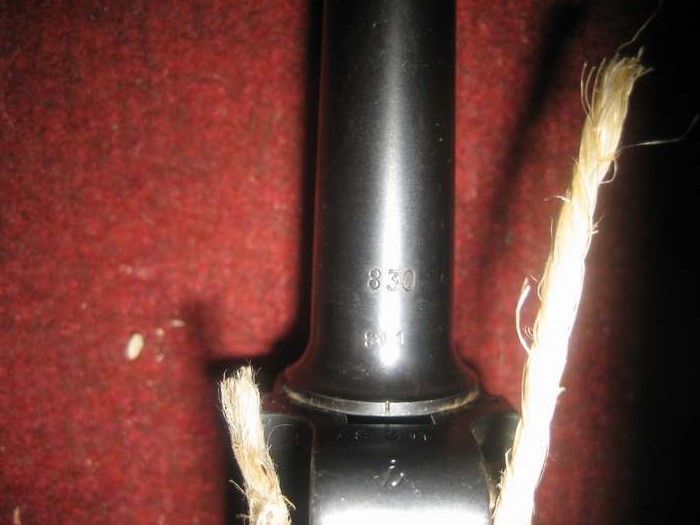 Pertenecía a mi abuelo, al cual se la regaló un oficial alemán a cambio de un revólver en tiempos de la guerra, pero no sé la fecha exacta. No la utilizaba, pues la guardaba como recuerdo. De ahí su buen estado (el cañón no presenta picaduras) y que el pavón sea el original, aunque habrá expertos que lo vean mejor que yo, pero creo que es el original.