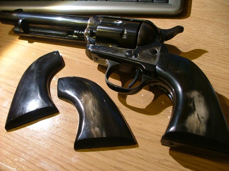 Gracias por los comentarios, las fotos no le hacen justicia, en vivo son mucho mas impresionantes, esas betas a juego con el "marmolado" del "frame" en la versión pavón quedan de impresión, además, al ser de cuerno, son mas finas que las de madera orifginales, en mi mano sientan mejor y el revolver adquiere otras proporciones, mas revolver y menos cachas, a mi me gusta mas asi!!.