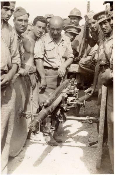 La foto está tomada en Belchite en 1937 y en ella se ve en el centro al veterano militar polaco conocido en España como General Walter, un destacado mando de las Brigadas Internacionales durante la Guerra Civil.