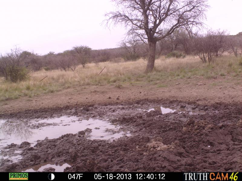 Ayer, cuando llego al cebadero, desde lejos, me quedo mirando y veía algo raro, se había roto la cuerda que cuelga el bidón de la comida y los cabritos se lo habían llevado dandole trompazos mas de 100 metros, así que me toco andar de urgencia para ponerlo en su sitio; con todo, sobre las 22,00 me entraron dos jabatos (de unos 30/40 kiletes), no es el que yo quiero que entre, así que comieron y se ducharon. Una vez maqueados, siguieron su camino.