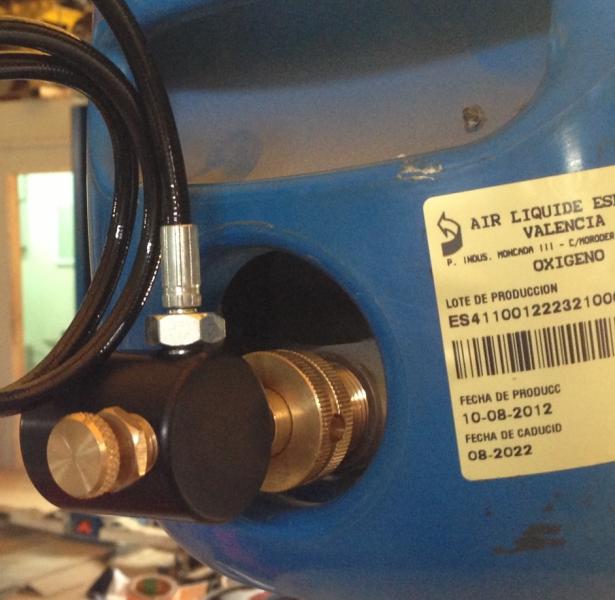 Si no me pasare por alguna empresa de gases a que me preparen un alargador o algo, la bombona es de un soplete de cortar hierro, tiene oxigeno y esta a 200 bares asi que yo creo que si que vale.