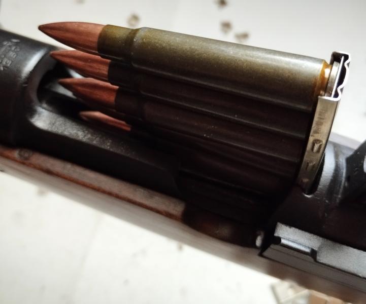 Bueno, finalmente conseguí peines del Kar98 y le van perfectamente al FR-8, nada que ver con los peines que tenía antes para el .308/.30-06 que no entraban en la acanaladura por ser demasiado anchos.