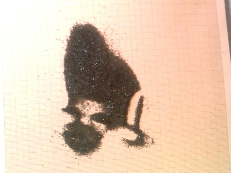 el cartucho que he desmontado de perdigon del nº 7, perteneciente al lote 705280 contiene 31,52 gramos de perdigones y 1,73 gramos de pólvora esferoidal aplastada, la granulometria oscila desde el tamaño de una mota de polvo a esferas aplastadas de uunos 0,7 mm de diametro y de un tono gris verdoso con brillo de cristales de mica.