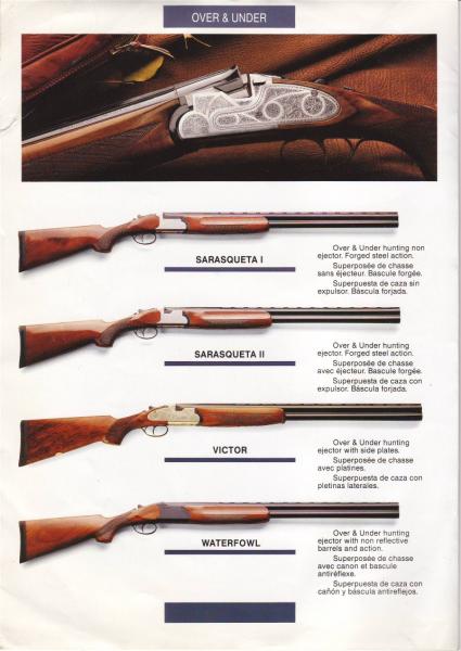 Han existido varios fabricantes a los que unía el apellido Sarasqueta (con una sola R) pero los únicos de los cuales, al menos que yo conozca, guardaban parentesco entre sí fueron Victor Sarasqueta Suinaga y Juan José Sarasqueta Suinaga. A la muerte del primero, ocurrida en 1930, sucedió su hijo Victor Sarasqueta Basterrica y al segundo Vda. e hijos de J.J. Sarasqueta. No tengo conocimiento de que tanto Felix Sarasqueta como que J.M. Urriola Sarasqueta fueran familia de los anteriores. Del mismo modo, las escopetas que fabricaron, sí que algunos modelos guardan algún parecido entre sí, como con los de cualquier otro fabricante. La excepción es precisamente la superpuesta de Felix Sarasqueta, que ningún otro de ellos hizo algo parecido, salvo Vda. e hijos de J.J., incluso llamando a una de ellas con falsas pletinas, mod. VICTOR, demostrando una desfachatez total. No voy a discutir su calidad, ni el nivel de satisfacción de sus propietarios, pero es lo que es.