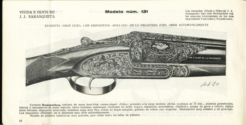 Vda. e hijos de J.J. Sarasqueta también hicieron escopetas de grado medio y alto. Por poner un ejemplo, fabricaban una escopeta superpuesta que comercializaban con su propia marca pero que también se la hacían a Westley Richards. Claro que esa época dorada lo fué hacia los años '50.