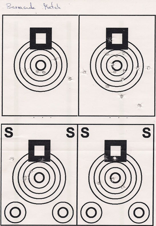 en fin, he probado con los barracuda match y power, exact y exact heavy, gamo ts-10, y norica thor, y pongo fotos solo de los barracuda match y ambos exact, que han sido los mejores. he usado blancos de br50 y disparado cinco veces al circulo central.
