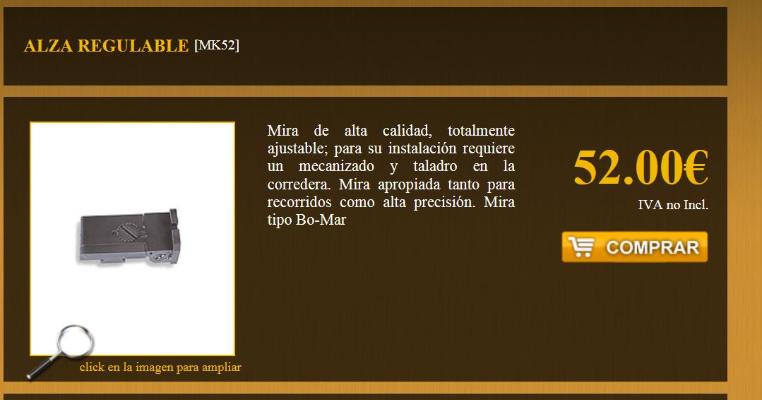 Lo que si, habría que mecanizar la parte de atrás (fresar la corredera a cola de milano 60 gradosX359 milésimas de pulgada) por un armero competente (Masip), y no matarse mucho para encontrar un alza de calidad, pues SPS, las tiene a un precio mas que contenido: