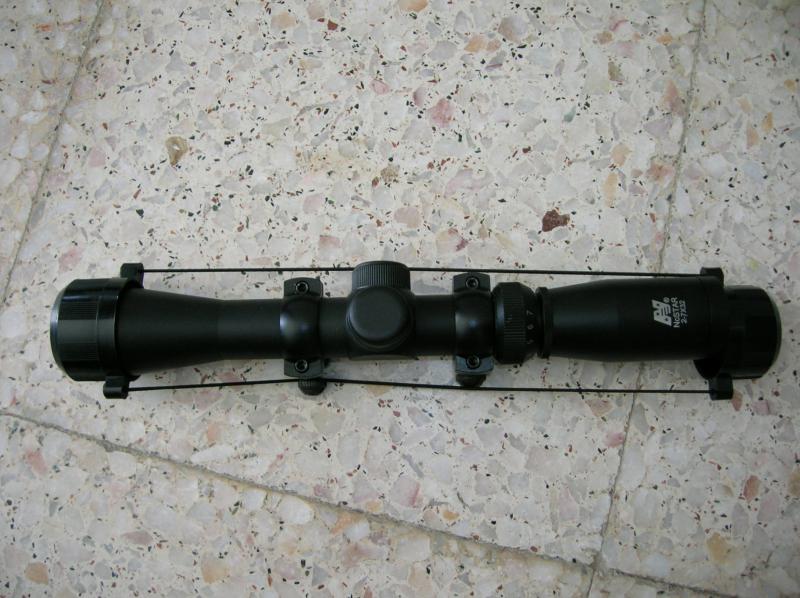 visor ncstar, 2X7X32 long eye relief, para su uso con pistola o rifle scout, viene con anillas weaver. Ni un cargador de 15 de la 30M1 tirado con el visor montado.