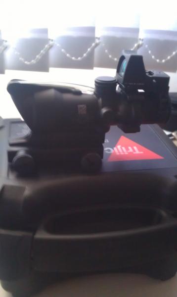 Buenas tardes a todos, aqui os dejo unas fotos del visor en combo. El punto rojo es un RMR led 2 MOA de Trijicon con la montura para superponer al ACOG.