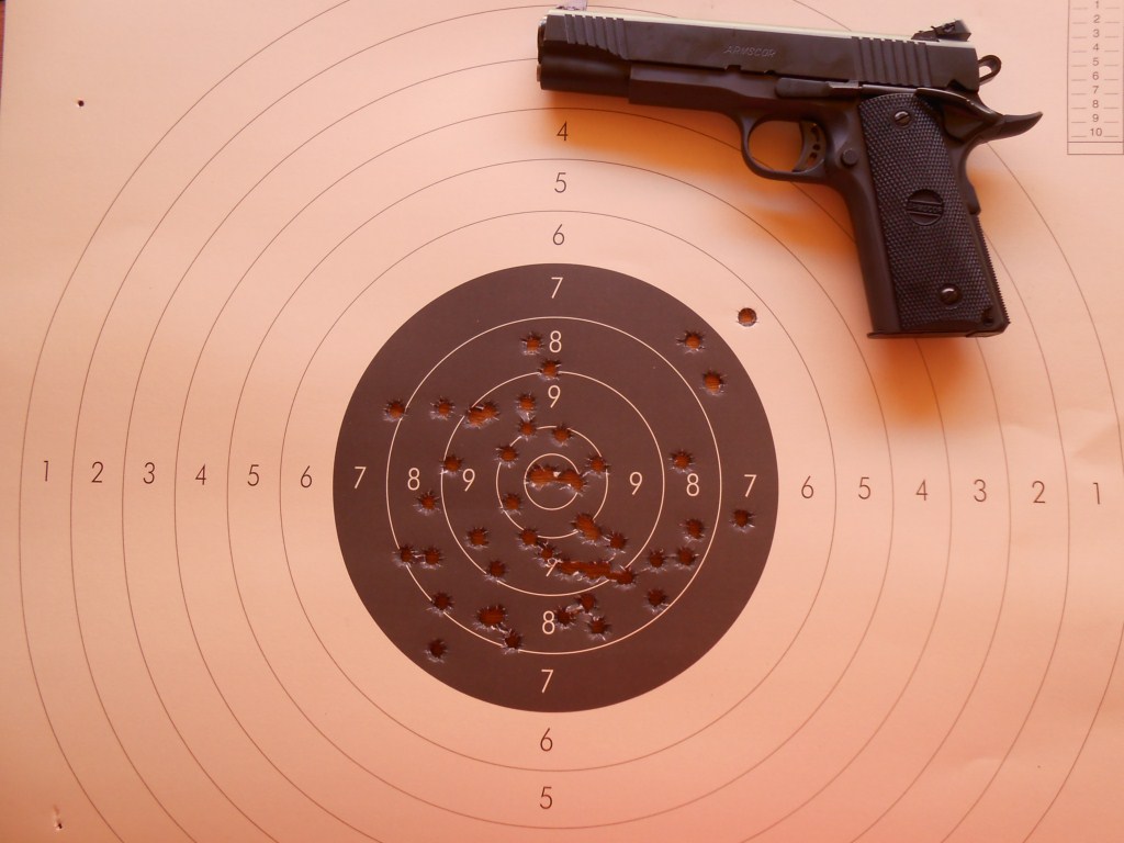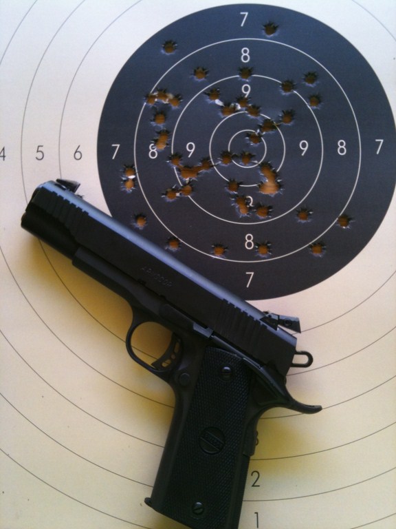 Los parches están quitados la prueba fue 10,8,8,8,7 en precisión (el arma estaba en punto en blanco) y 10,10,10,9,9 en tiro rápido.