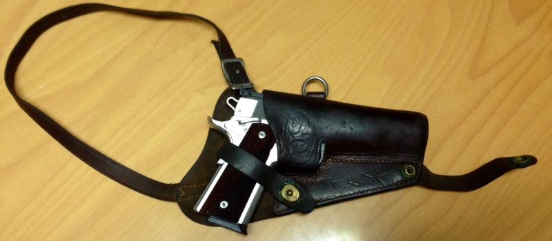 Tengo desde hace tiempo la funda para Colt 1911 que veréis en la foto. Aunque tal vez no se aprecie, lleva marcado "TEXAS".